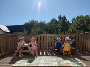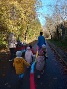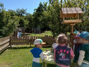 Podczas zabaw na zewnątrz dzieci obserwują przyrodę, biegają, wspinają się, budują, eksperymentują i rozwijają swoją naturalną ciekawość świata. Uczą się dostrzegać zmiany w przyrodzie, poznają rośliny, zwierzęta i zjawiska atmosferyczne.