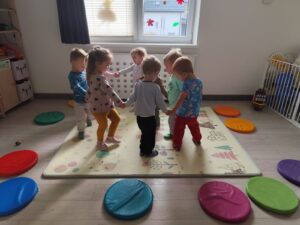 Codzienna porcja ruchu to zdrowie i radość. W naszym żłobku codziennie dbamy o to, by maluchy mogły rozwijać się poprzez aktywność fizyczną i zabawę. Zabawy ruchowe oraz zajęcia gimnastyczne wspierają prawidłowy rozwój motoryczny, uczą koordynacji i równowagi, a przede wszystkim dostarczają mnóstwo radości.