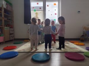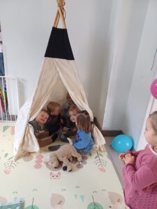 Podczas zajęć wykorzystujemy kolorowe pomoce dydaktyczne, piosenki, rymowanki, krótkie zabawy ruchowe i mini scenki teatralne.