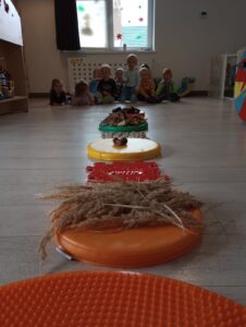 Podczas zajęć dzieci eksperymentują z różnymi fakturami, kształtami, kolorami i dźwiękami. Bawią się piaskiem kinetycznym, masami plastycznymi, wodą, ryżem, kaszą czy bezpiecznymi materiałami przyrodniczymi. Dzięki temu rozwijają ciekawość, wyobraźnię oraz sprawność manualną.