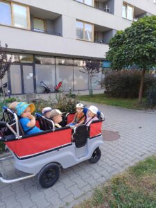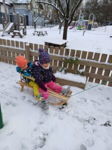 Ruch i zabawa na świeżym powietrzu to nieodłączny element każdego dnia w naszym żłobku. Wierzymy, że kontakt z naturą ma ogromne znaczenie dla zdrowia, rozwoju i samopoczucia dzieci. Dlatego codziennie spędzamy czas w ogrodzie żłobkowym lub podczas spacerów, niezależnie od pory roku.